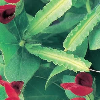 This low spreading plant has small trifoliate leaves, and deep crimson flowers are borne in pairs. Harvest pods when approximately 2.5 cm (1 in) long. ( about 80 days)