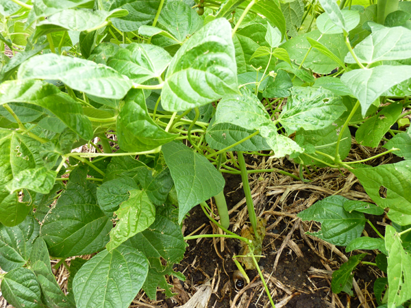 Traditionally sown in rows, dwarf beans also grow well 'broadcast' or scattered over an area. Just scatter the seed (don't worry about the odd ones which are close up). Cover with soil, potting mix, or compost and firm down with the back of a spade or rake. Grown this way the beans will mostly shade out competing weeds and 'self-mulch'.