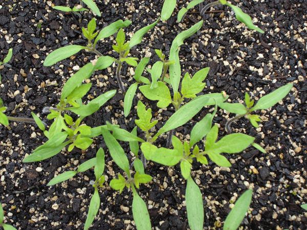When you plant out, put the seedlings in a deep holes, up to the top set of leaves. The covered stems will put out extra roots and you will have a stronger, healthier plant.